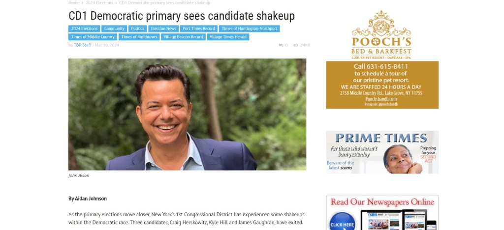 Click image to view PDF version of: “CD1 Democratic primary sees candidate shakeup” published in TBR News Media on March 10, 2024.