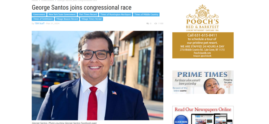 Click image to view PDF version of: “George Santos joins congressional race” published in TBR News Media on March 21, 2024.